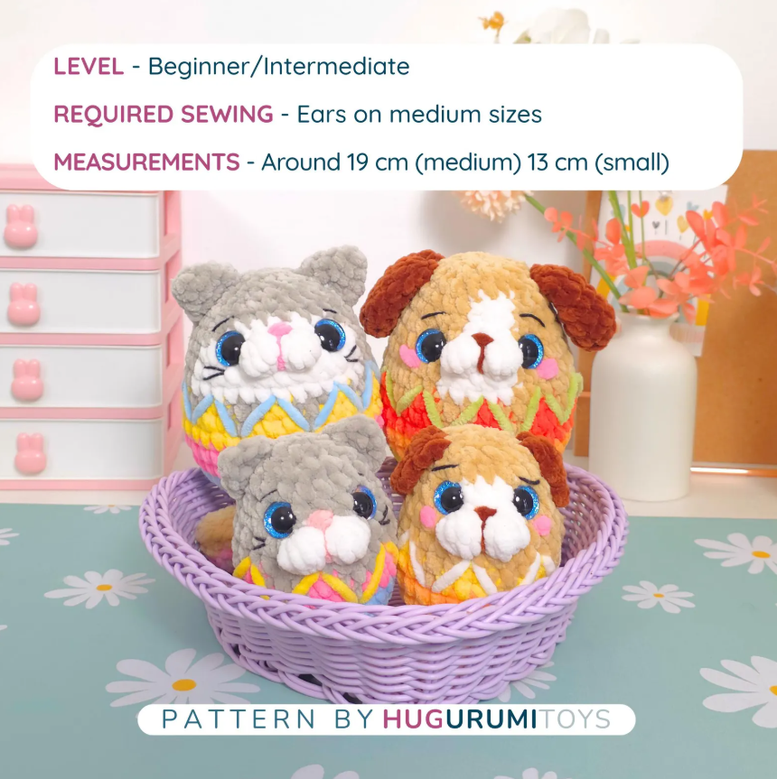 easter crochet pattern, easter egg amigurumi, cat easter egg crochet, dog easter egg crochet, easter amigurumi bundle, no sew crochet pattern, low sew amigurumi, cute easter crochet toy, kawaii easter crochet, crochet easter animals, easter plush crochet, quick easter crochet, amigurumi easter bundle
