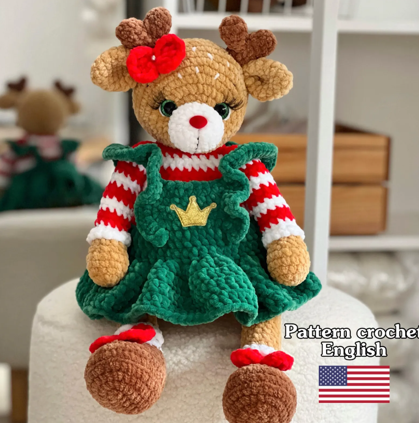 This is Crochet pattern christmas reindeer (+dress).