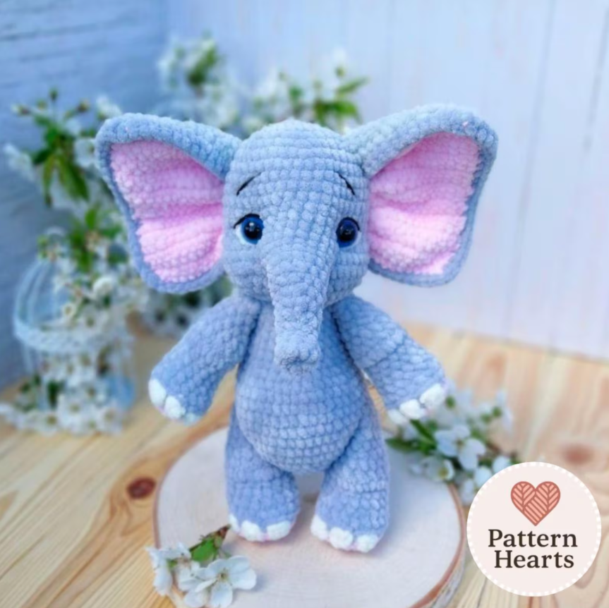 Make your own adorable Elephant plushie with this detailed amigurumi crochet pattern (PDF)!