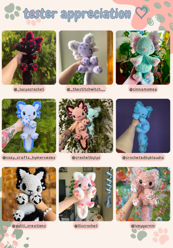Mochi is the sweetest cuddle buddy. She is an adorable fusion of a kitty and an axolotl, and you can now create your own with this detailed and easy-to-follow crochet PDF pattern! This pattern creates a snuggler; her body is left unstuffed to create an extra cuddle plushie!