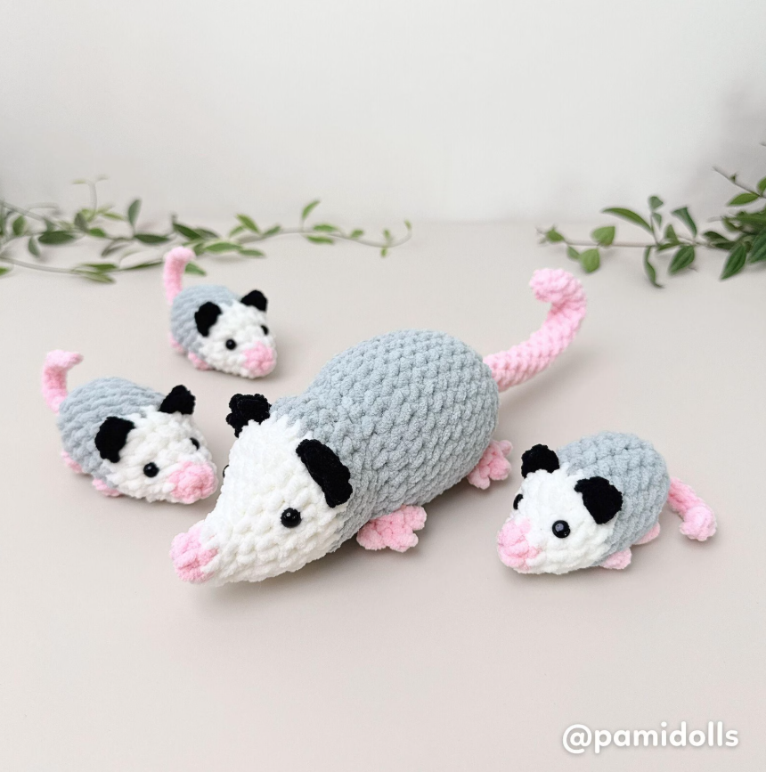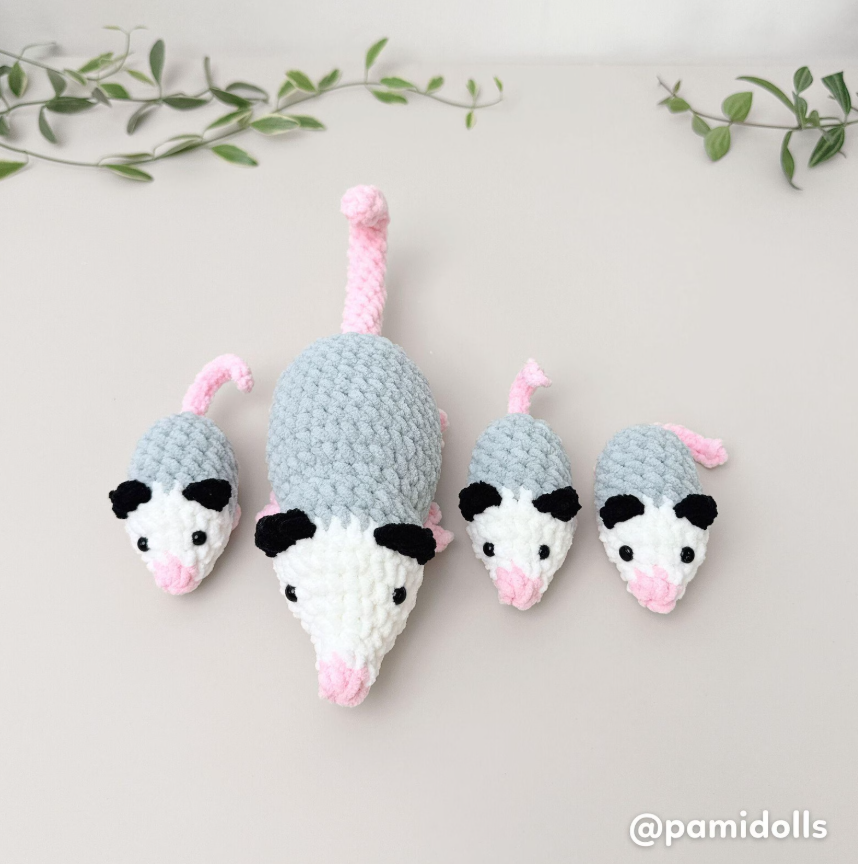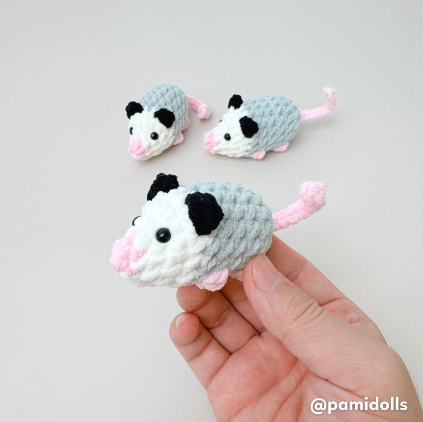 – The mama opossum is 16 cm (6.3 inches) long, not including the tail.